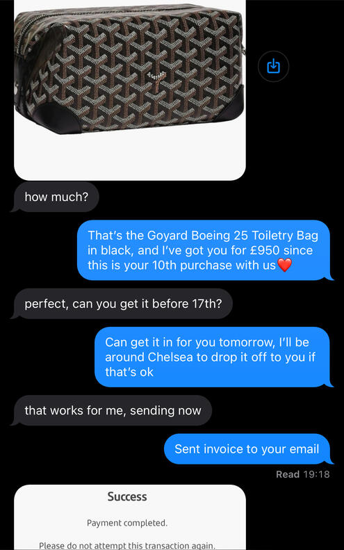 From Goyard to Hermès, we discreetly source rare designer pieces — including Birkins you won’t find on any shelf. Every item is guaranteed authentic, and once approved, you’ll have my direct line for personal, on-demand access.